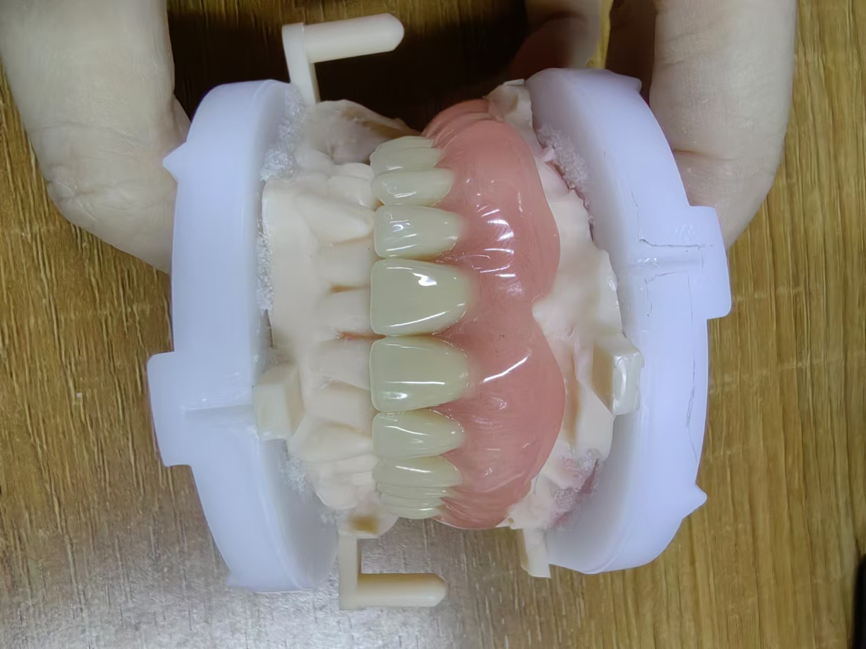 •         The base is made of acrylic, a type of plastic that is lightweight, durable, and easily molded to the shape of the mouth.